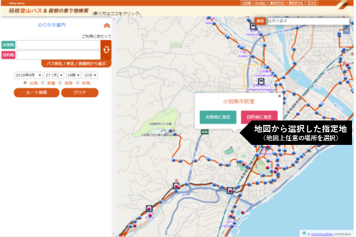 を選択するか、または箱根エリア内であれば地図上のどこでも任意の場所を選択すると、