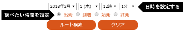 ・前の便 検索設定値より前の時刻で経路の再検索をします