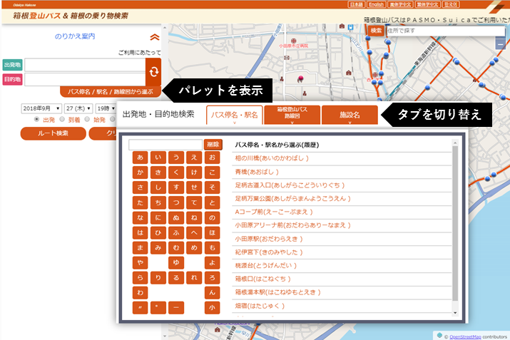 ・小田急全線(小田原線、江ノ島線、多摩線)→(ただし発着のどちらかは箱根山内及び小田原駅~新松田駅を含む)※ふじさん号とメトロ箱根号は含まずまた、登録された施設の検索ができます。