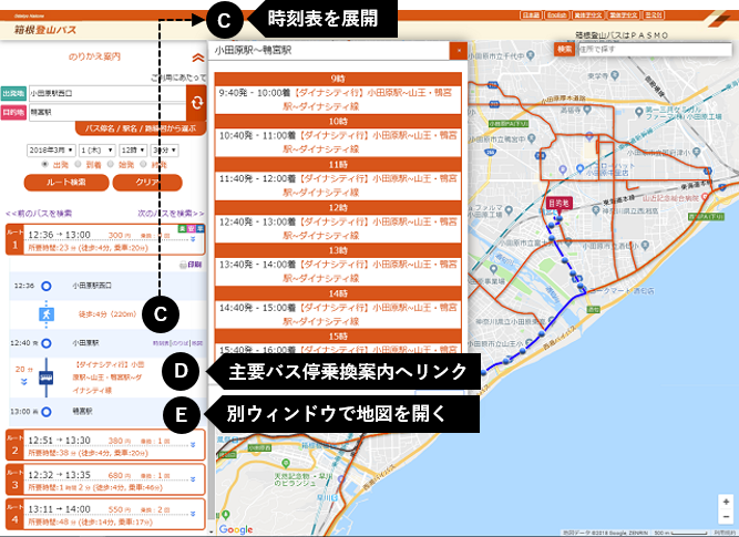 箱根登山バス「のりかえ案内」サービス(以降「本サービス」に省略)は、箱根登山バス株式会社の時刻表データを元にジョルダン株式会社のシステムで乗り換え・運賃検索サービスの提供を行っております。